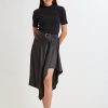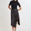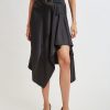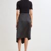 Satin Asymmetric Hem Midi Skirt