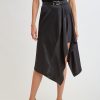 Satin Asymmetric Hem Midi Skirt