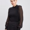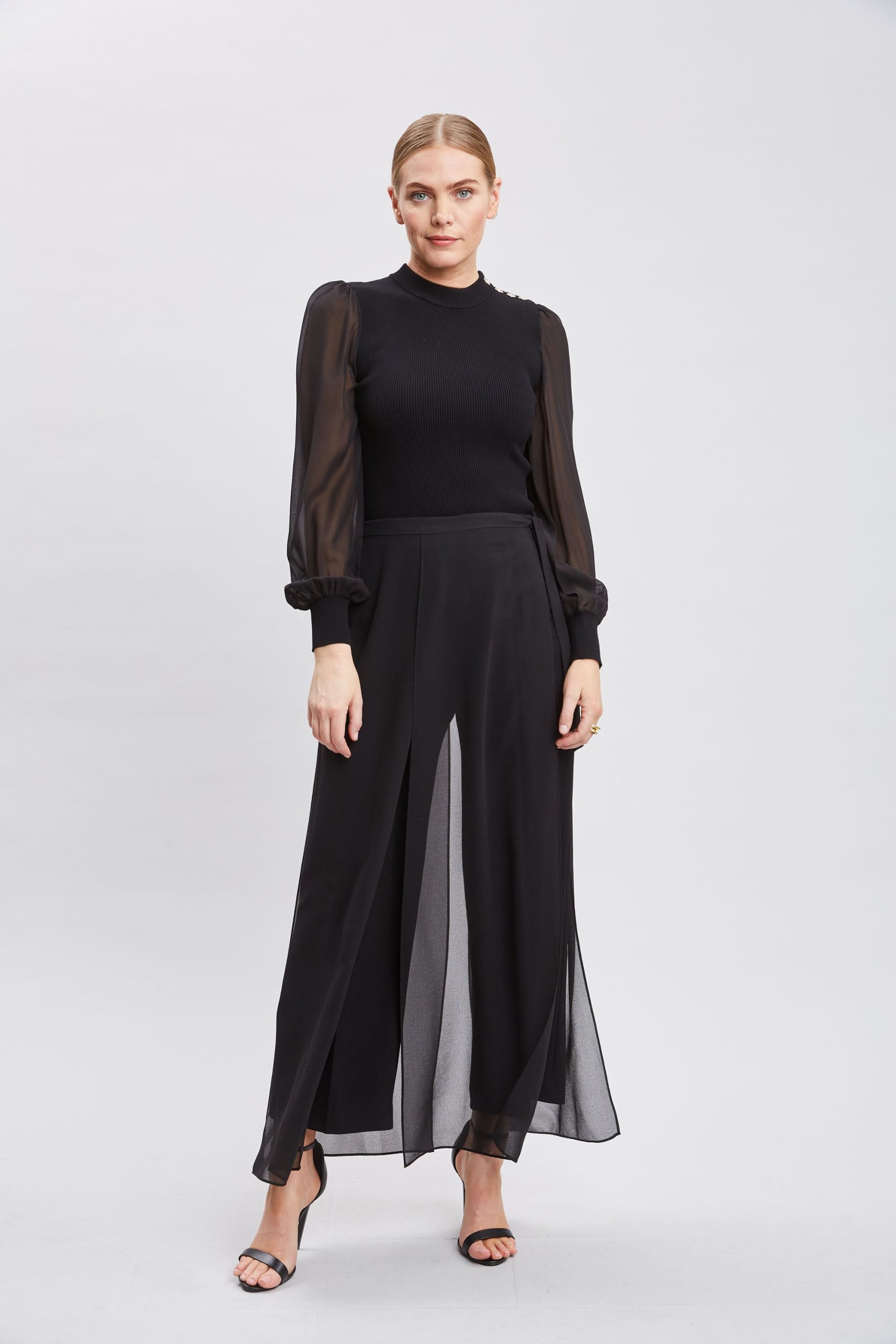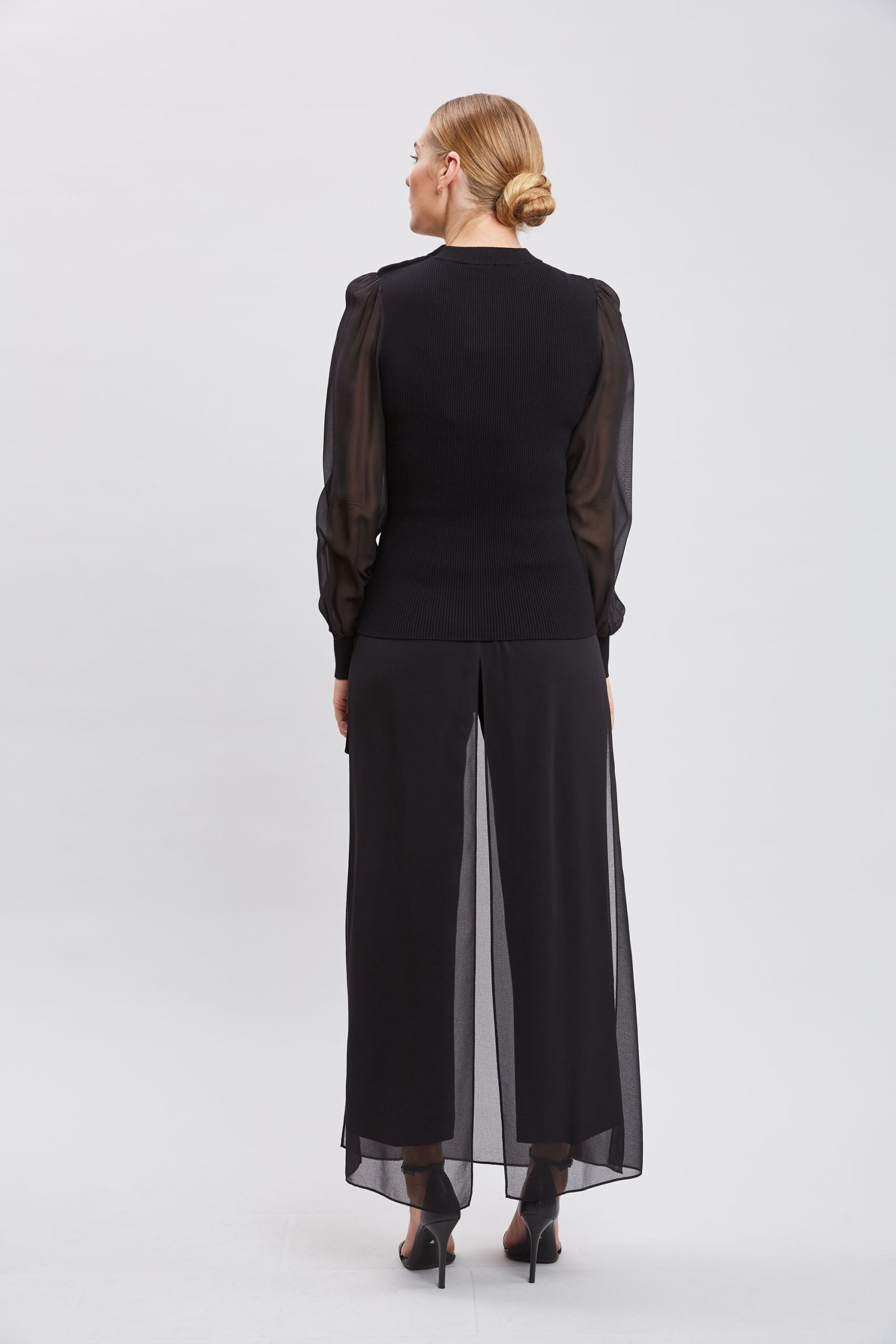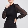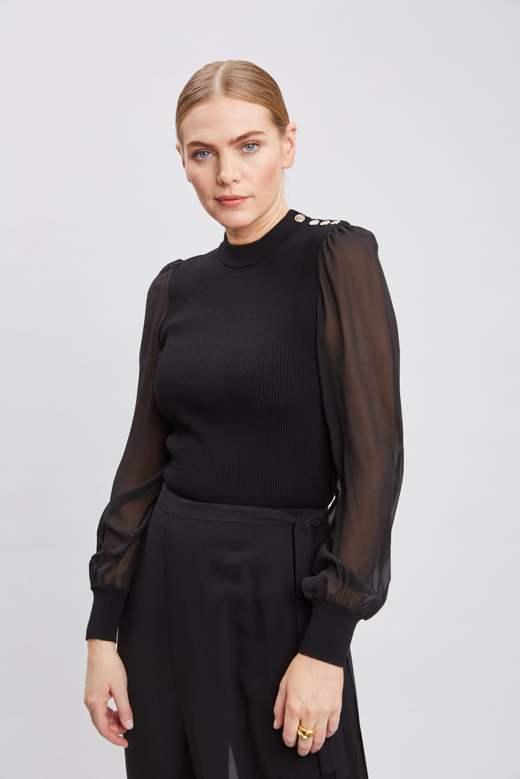 Elie Tahari Women’s Chiffon Sleeve Button Knit | Black