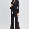 Our graphic contrast trim Blazer has the designer touch. With a peak collar & single button closure, this jacket is elevated with a double layer lapel. Wear it casually with vegan leather or pair it with its matching pant for the seasons must have matched suit.