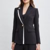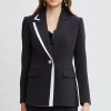 Single-Button Crepe Blazer with Contrast Trim Lapel