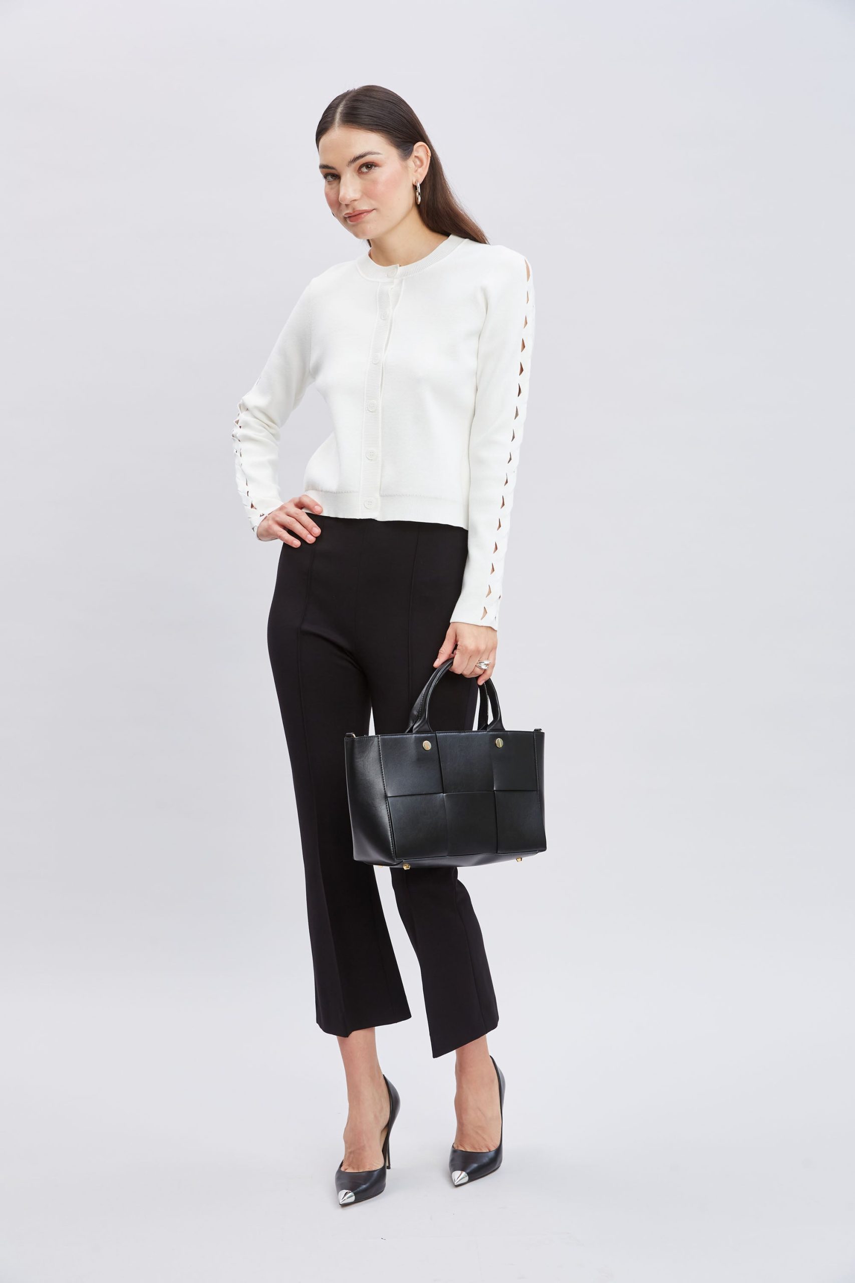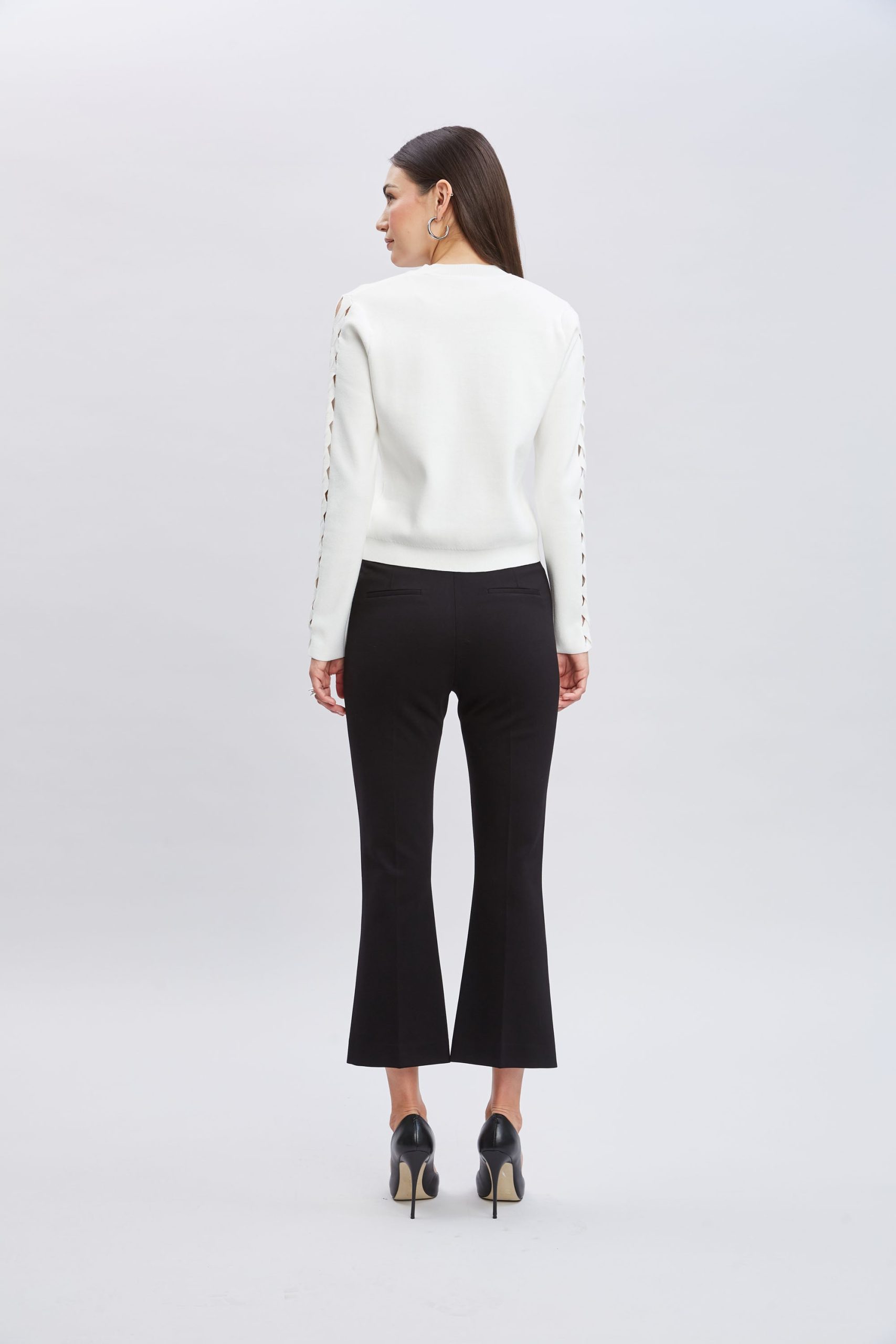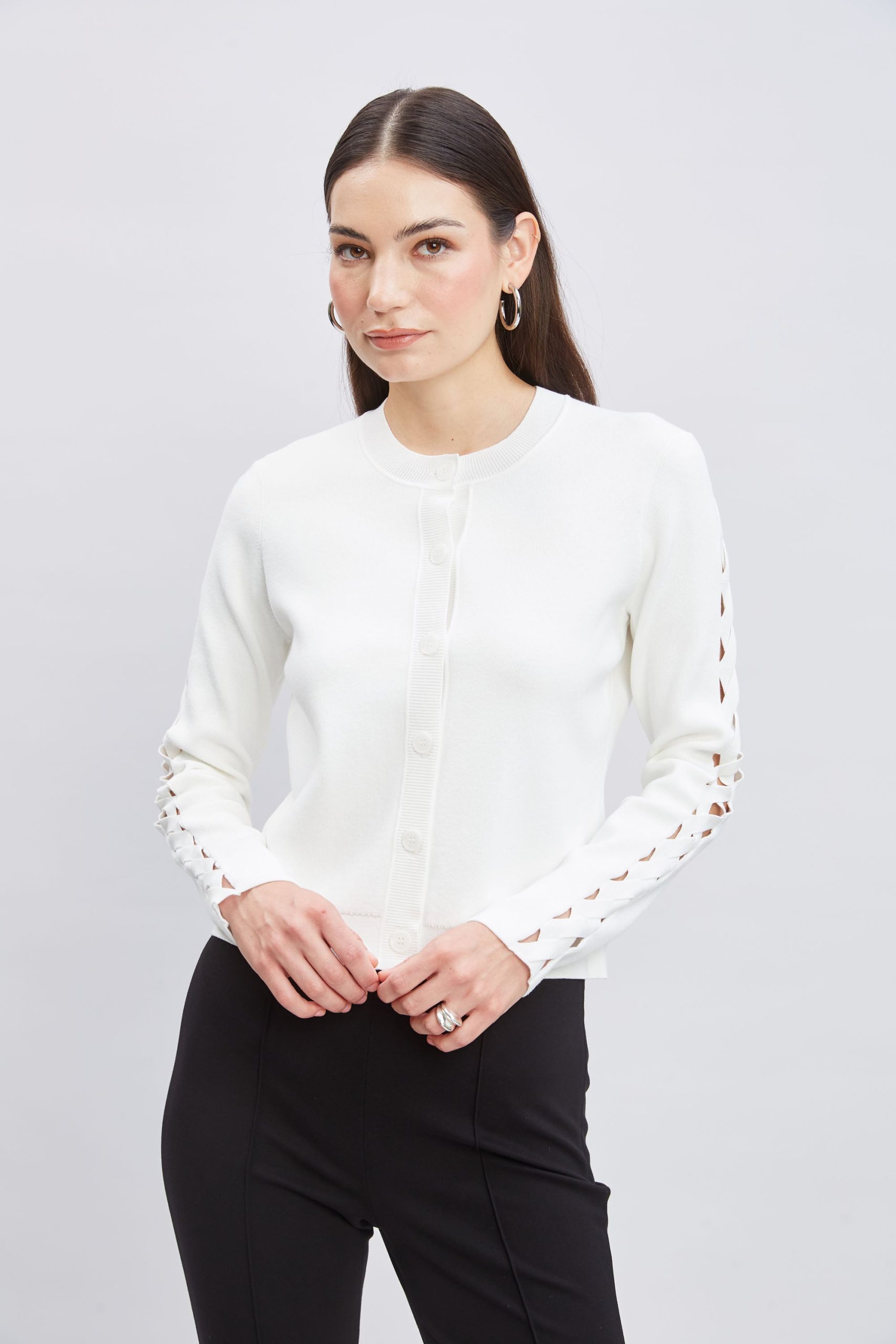 It’s all in the details! All eyes are on the cutouts that accent the sleeve of this essential cardigan. Dress it up or down with our denim for a fresh take on a must-have.