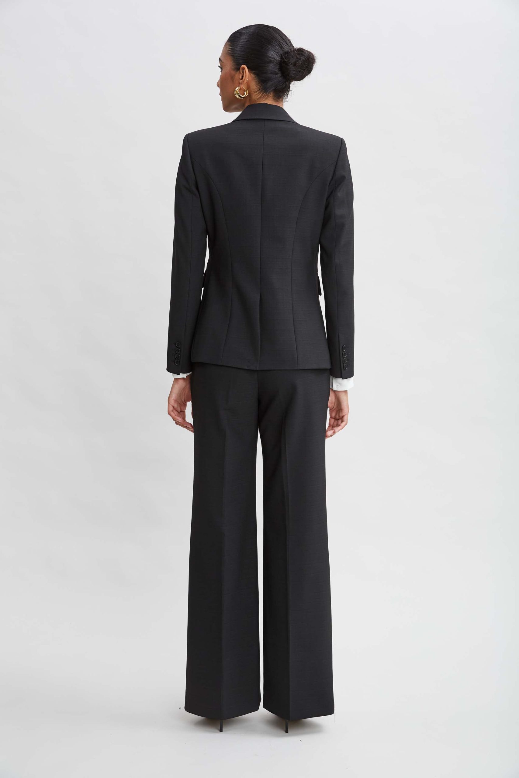 The Double-breasted jacket is reimagined in a chic pebble weave fabric. We love the easy modern proportion & impeccable fit of our double-breasted blazer. Pair it with its matching pants for a monotone column or mix it up with our sleek Vegan Leather, satin or denim.