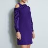 Chic and of the moment, our off shoulder draped dress is a must-have. The easy fit of this crepe dress features a draped Silk Satin neckline & sleeves that adds the glam factor. Dress it up with your favorite earrings & strappy sandals.