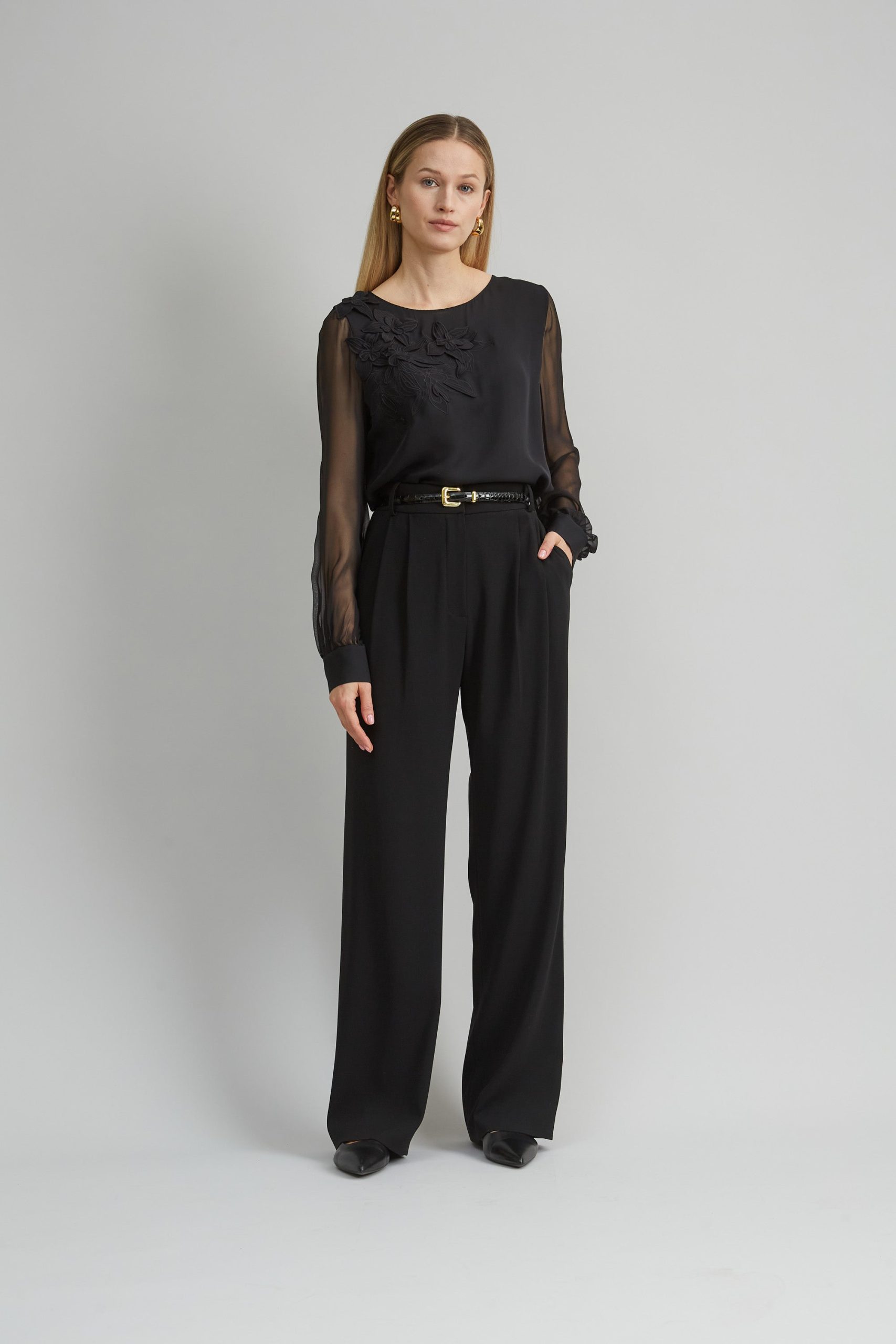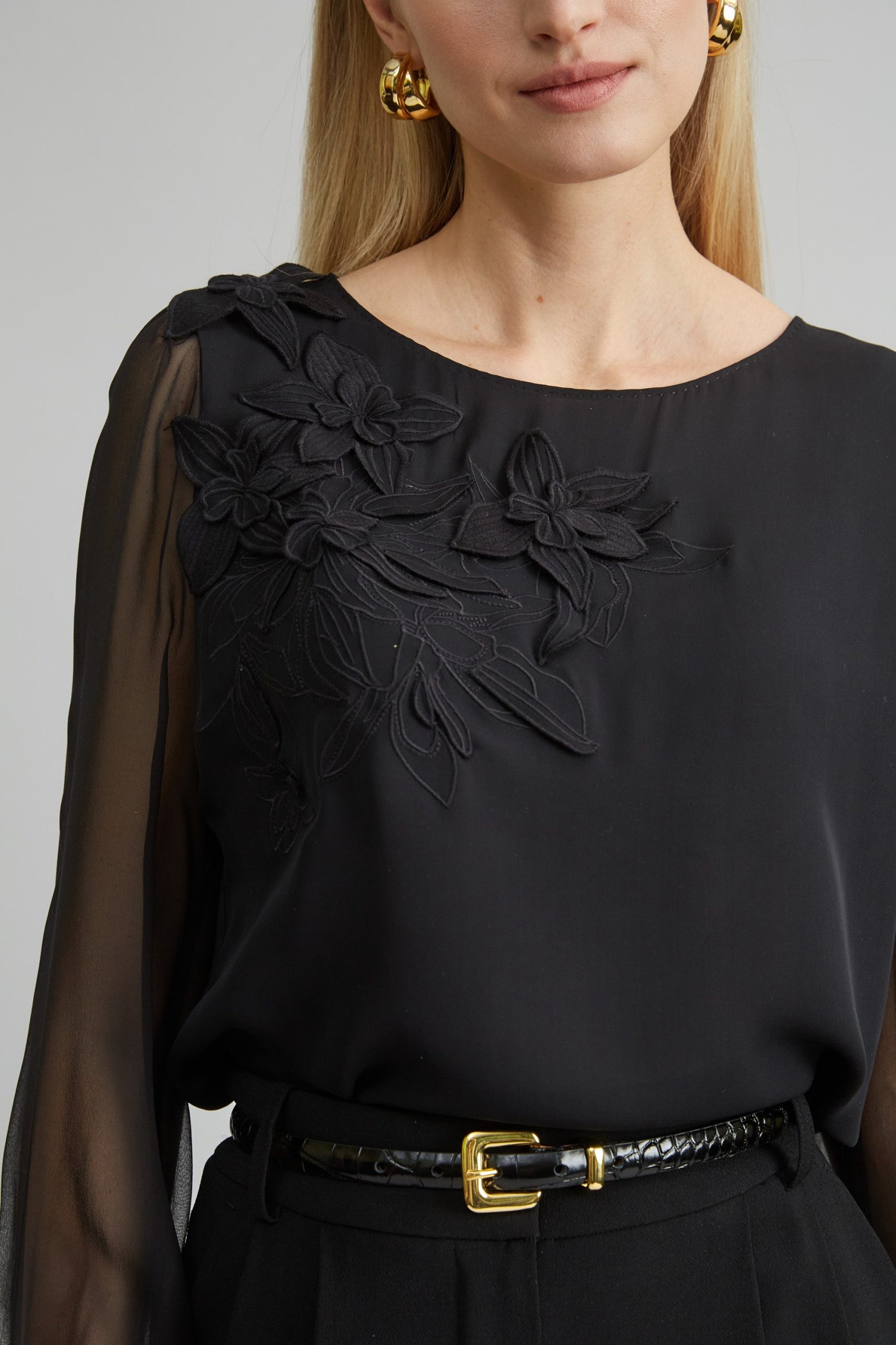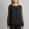 Elie Tahari Women’s Floral Applique Silk Shirt | Black