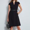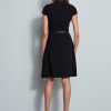 Fit & Flare Fluid Crepe Short Sleeve Belted Dress