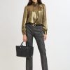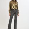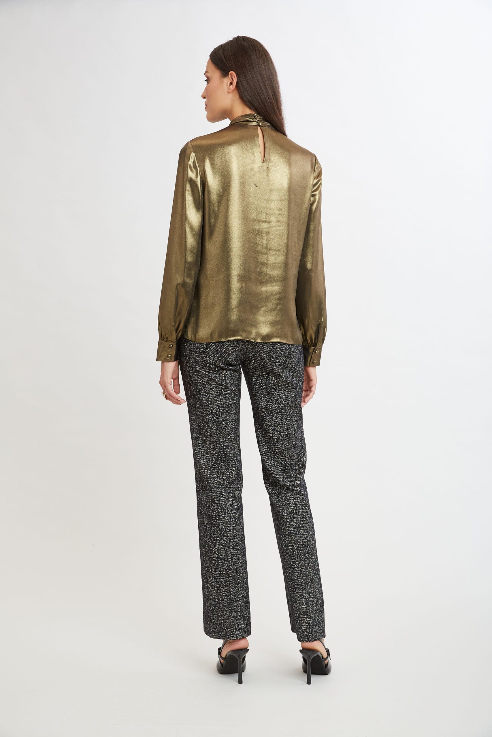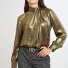 Elie Tahari Women’s Metallic Draped Neck Shirt | Antique Gold