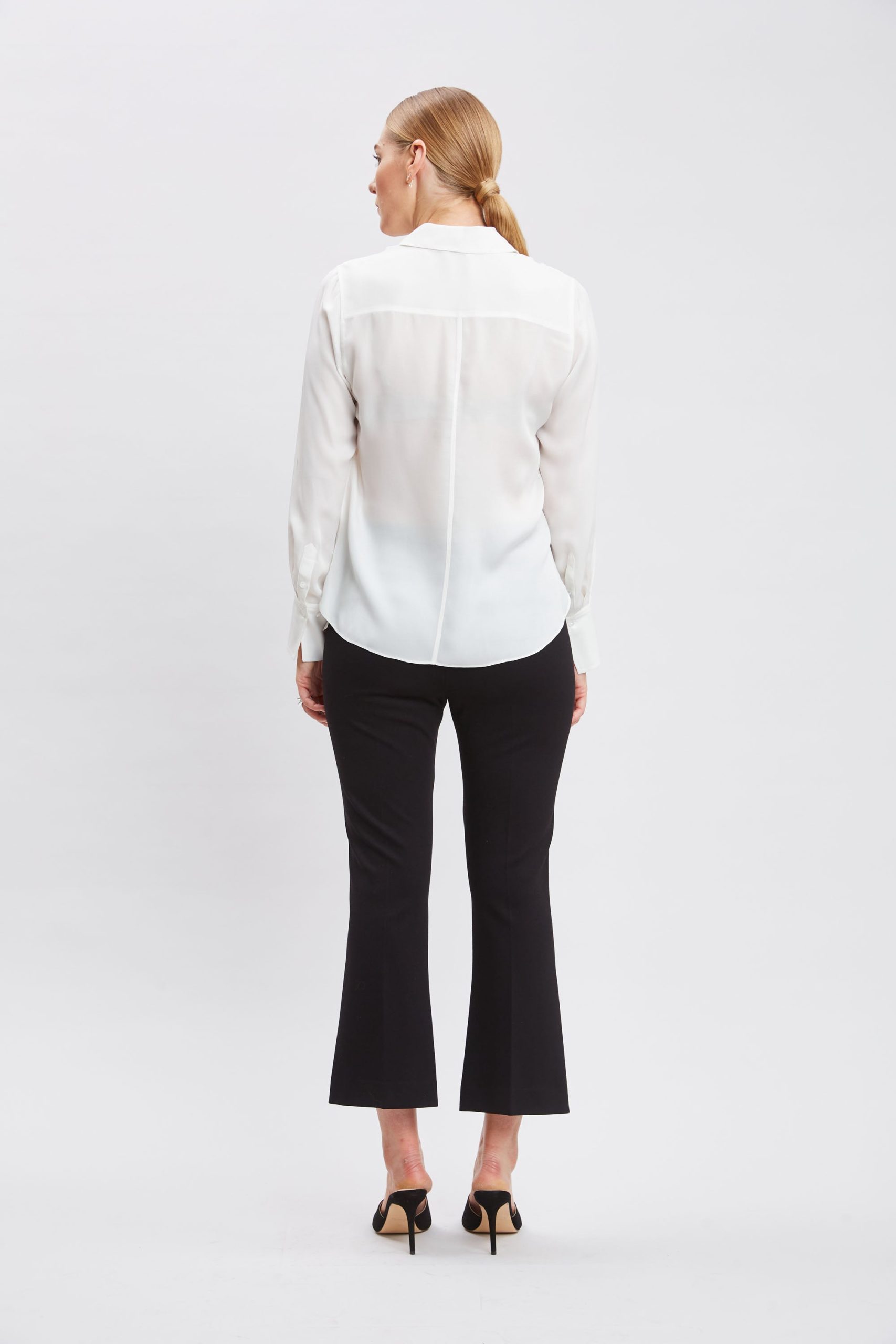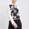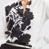 This is the pop of designer artistry that speaks of a new season. Luxe Silk Georgette was the canvas for the dramatic black & white Midnight Garden Floral in a modern button shirt.