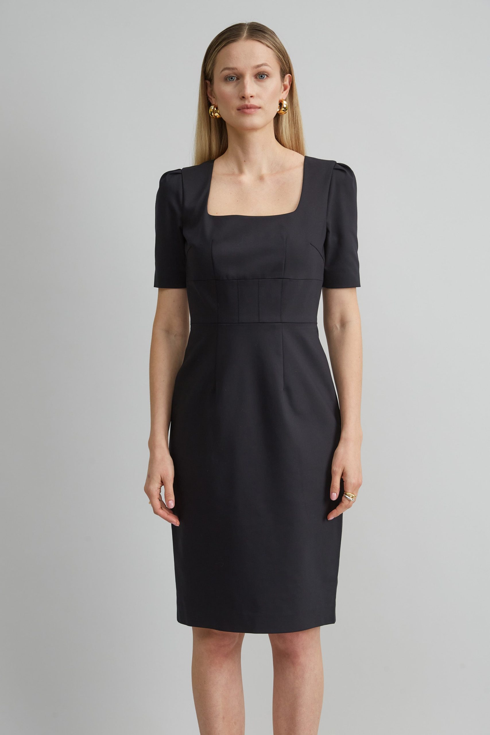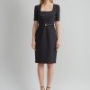 Elie Tahari Women’s Short Sleeve Square Neck Cotton Dress | Black