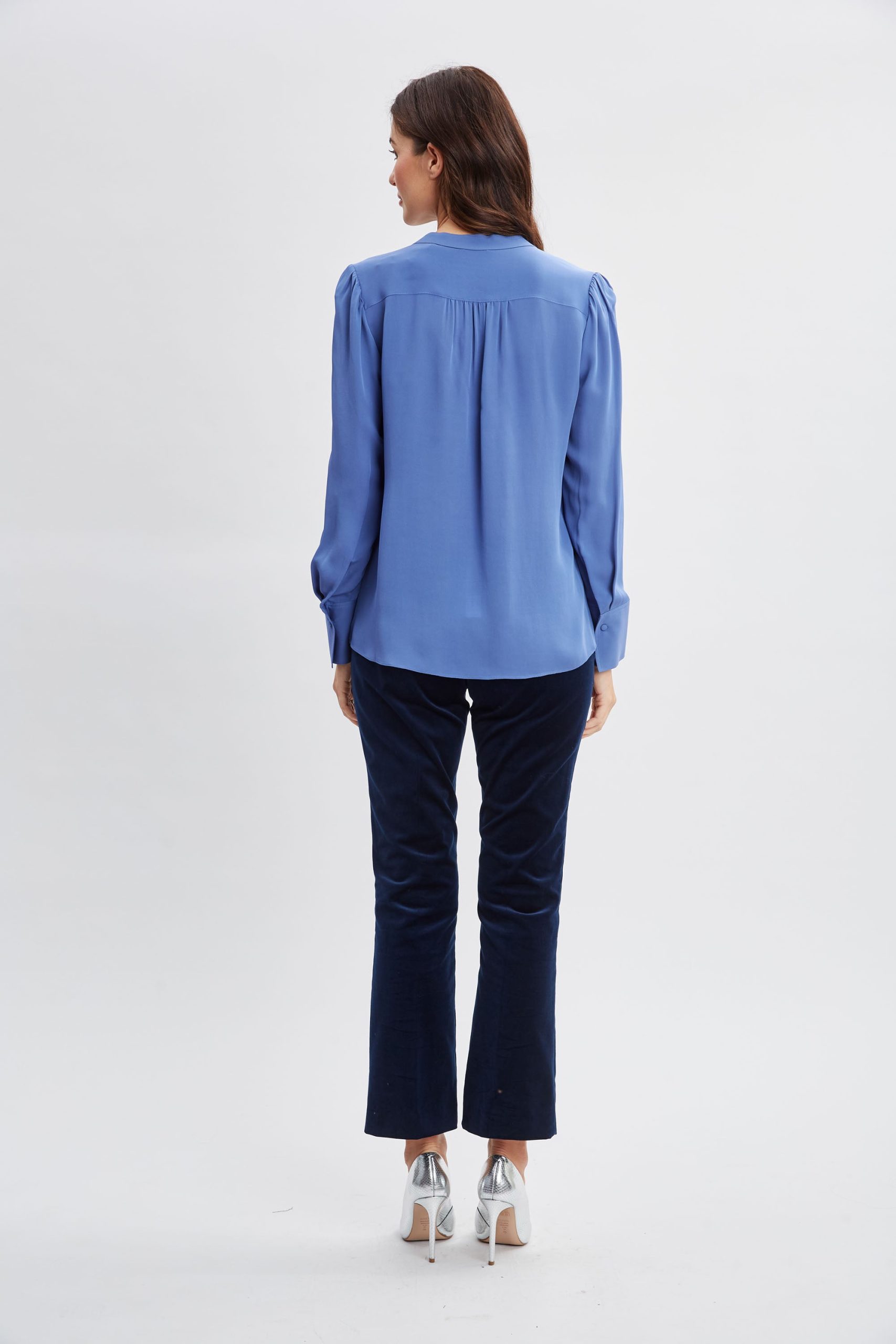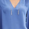 Monili Chain lends our Silk Georgette shirt a modern chic attitude. The flattering V-neck is detailed with chain trim and a delicate fringed chain. A modern staple that you’ll reach for again and again.