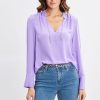 Washed Silk Jacquard Long Sleeve Button Down Top with Utility Patch Pockets