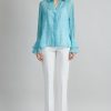 Elie Tahari Women’s Silk Plaid Jacquard Shirt | Aquamarine