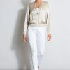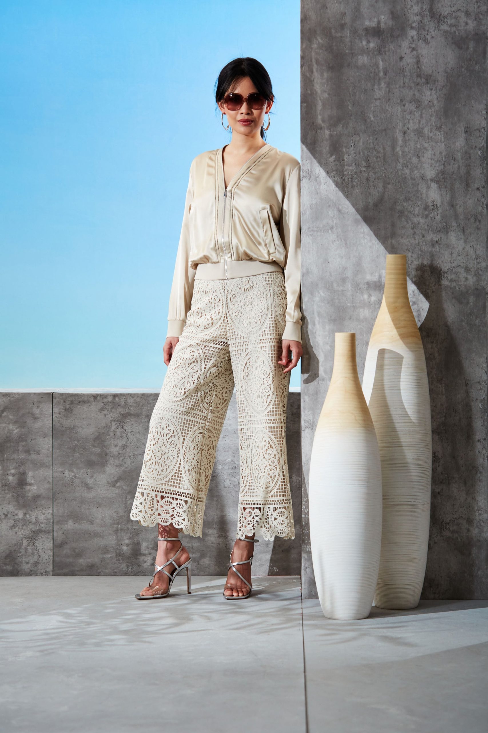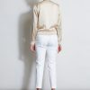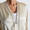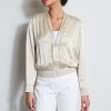 Silk satin takes a sporty detour in this chic bomber. Detailed with a zip front, knit trim & decorative embroidery stitching along the zip closure – dress it up or down with denim or your favorite pants.
