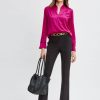 Effortlessly chic, this shirt is destined to become a favorite. Luxurious Silk Satin elevates this minimalist top. With its contour neckline, soft pleat detail & ruffle cuffs, this essential piece is seasonless.