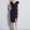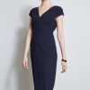 Elie’s take on the season’s must have sheath dress. The body contouring lines accent its modern slit & double layer v-neckline. Designed in our signature Fluid Crepe, it flatters every curve. This dress is destined to become a favorite for desk to dinner.